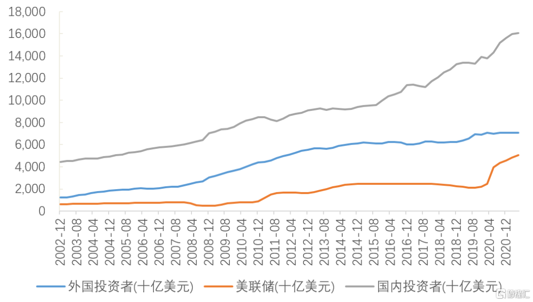图6:疫情后美债新发主要靠美联储和国内投资者增持,海外投资者小幅减持
