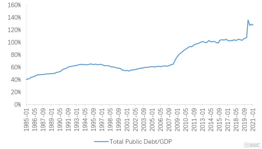 图5:美债存量国债/美国GDP疫情期间飙升