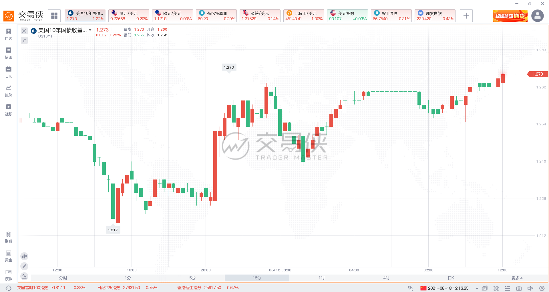 行情数据显示,指标10年期美债收益率隔夜微幅下跌0.4个基点报1.269%,盘中稍早曾跌至1.217%的低位,不过在进入纽约时段后强势反弹。分析师表示,由于许多投资者和交易员在8月下半月休假,交易一直不稳定。