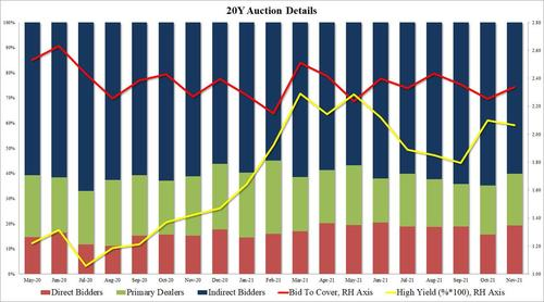 美国财政部周三进行了颇受瞩目的230亿美元美国20年期国债标售,最终得标利率为2.065%,比标售前二级市场的水平高出1个基点以上。这导致20年期美债和30年期美债收益率的倒挂现象持续存在。自2020年5月重新推出以来,20年期美债的需求就始终相对较弱。
