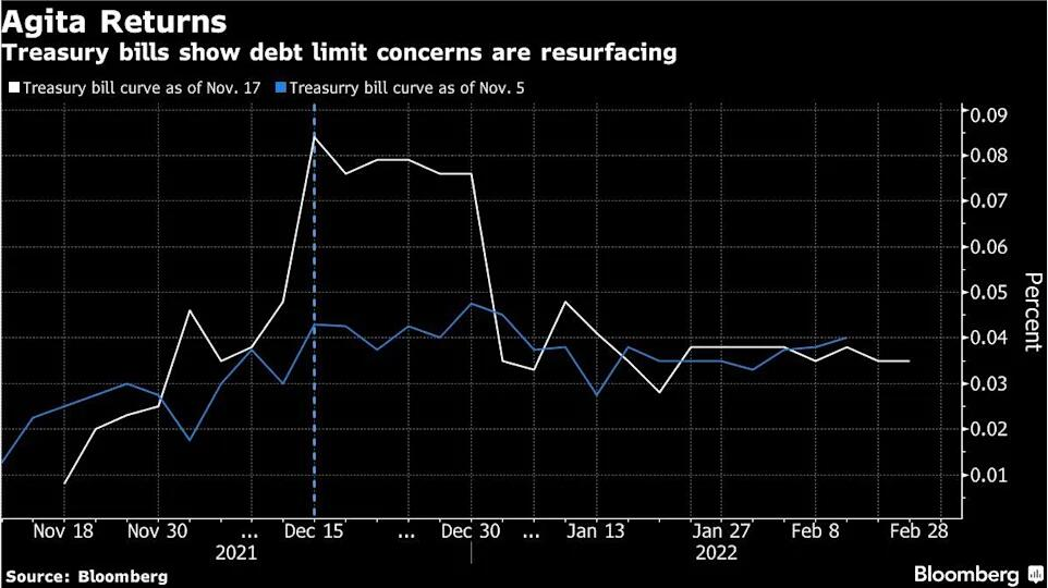 值得一提的是,在美国财长耶伦本周早些时候对债务上限威胁发出警告后,美国短期国库券市场周三再度出现了扭曲。投资者开始要求更高的收益率来持有美国政府的最短期限债券,担心若未来几周未能暂停或提高债务上限,美国政府将面临延迟还款的风险。