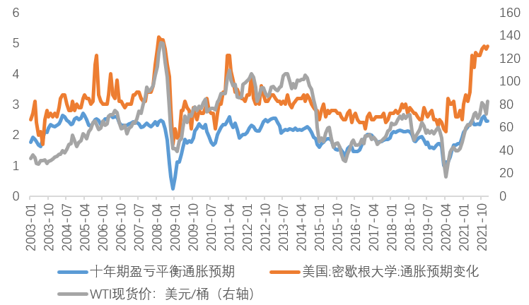 尽管近期油价冲高,但通胀预期已经不跟随上涨,未来通胀预期大概率回落。