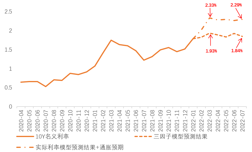 虽然不同模型对名义利率高点的预测存在分歧,但对一季度是利率上升最快阶段的预测是一致的。名义利率的全年走势是先上后下的“倒V”,无论定量还是定性,2季度都是利率上行后的重要观察期,通胀可能出现拐点,届时利率也可能出现“倒V”的顶点。