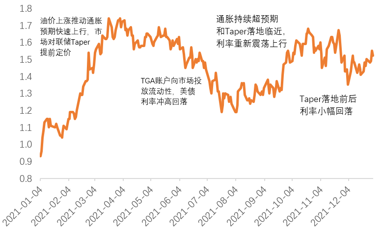 图1:2021年美债整体呈现“N型”走势(单位:%)