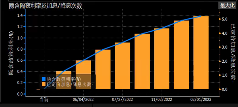 紧缩初期,美联储出于压制通胀预期的目的,叠加对经济就业的乐观线性外推,鹰派声音过大,引导的收缩预期过强,市场反应过度,美债利率可能超调。市场不确定的是利率会以多快的速度上涨以及将在哪里触顶。