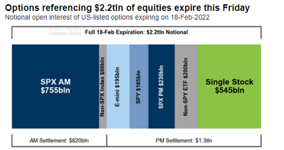 高盛策略师Rocky Fishman表示,约9850亿美元的标普500挂钩合约和1650亿美元与全球最大的交易所交易基金SPDR标普500指数ETF相关的期权将到期。