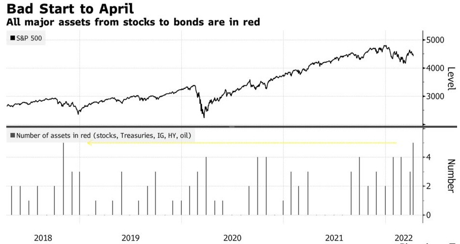 在线客服3月底全球市场感觉良好的日子已经一去不复返。从股票到债券,一切市场都在下跌——甚至油价也从接近纪录的水平回落,这是一场跨资产的抛售,让人想起了2018年10月由利率上升引发的崩盘。