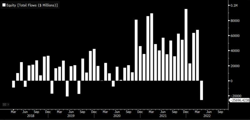 这种情况再加上持续的亏损,似乎终于对市场情绪造成了影响。第一季度,习惯了逢低买入的投资者正以至少2015年以来的最快速度逃离股市。根据彭博社汇编的数据,本月已有近260亿美元从股票型交易所交易基金(ETF)中撤出。