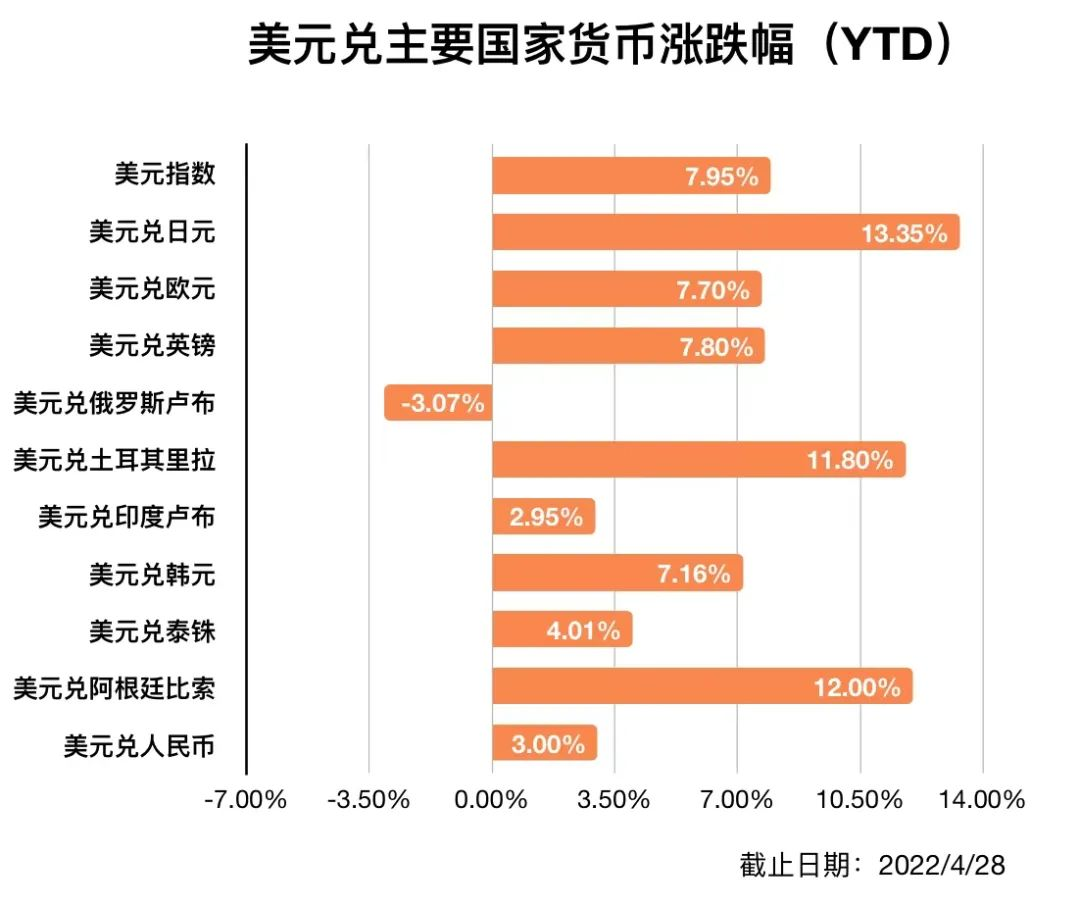 日元持续贬值带来的蝴蝶效应已经开始显现。今年以来,韩元贬值7%、印度卢比贬值近3%、泰铢贬值4%、土耳其里拉贬值11.8%。