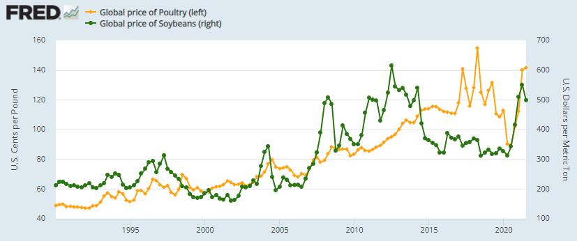 Cargill 的CEO David MacLennan 近期也对媒体表示,他已经改变了对通胀是暂时的这种看法,现在更加相信通胀持续的时间更长,因为2022年美国食品价格将更高。