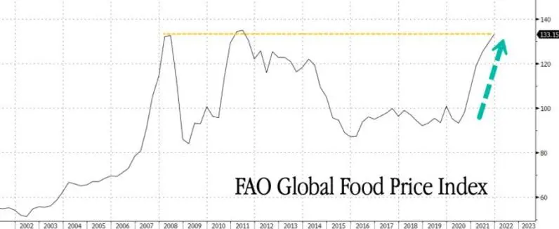 联合国粮农组织食品价格指数的最新数据显示,10月份的食品价格攀升至十年来的新高,主要原因是植物油和谷物价格飙升。随着食品价格的上涨,能源、住房和车辆成本的上涨,有工作的贫困美国人今年的实际工资已经变为负值。而食品作为必需消费品,需求没有弹性,在2022年供给端继续没有改善的情况下,涨价几乎是必然的。