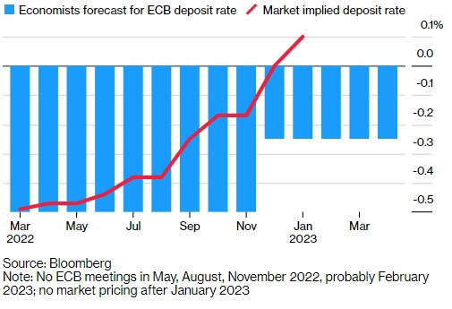 巴克莱经济学家Silvia Ardagna则是预计欧洲央行要到2023年3月才会加息。Ardagna认为,今年没有足够的证据来判断通胀是否会稳定在2%。
