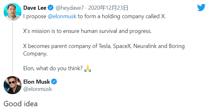 这不是马克思第一次考虑成立母公司,2012年,他就提出过这个想法。2020年,他还在推特上回复提出母公司提议的网友说:好主意。
