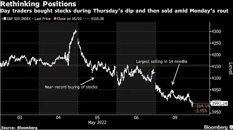 根据摩根大通(JPMorgan Chase & Co.)策略师Peng Cheng汇编的数据,随着标普500指数周一下跌超过3%,散户投资者净抛售了约10亿美元的股票,这是14个月以来最大规模的单日抛售。