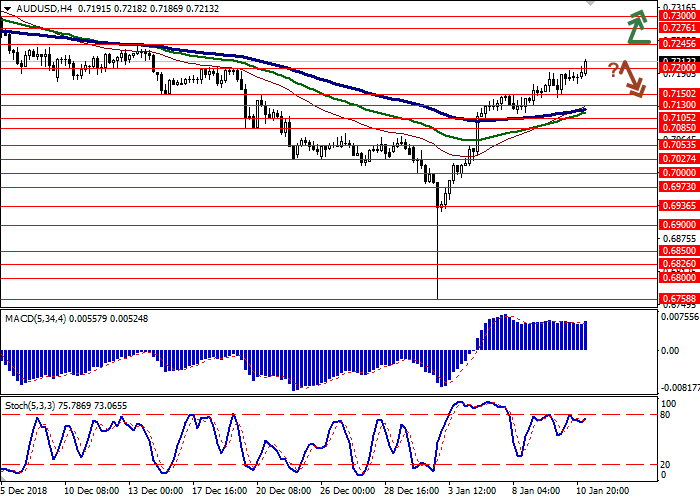 价格在当前水平反转,随后跌破0.7200或0.7180可能是开始修正做空的信号,目标为0.7105、0.7085或0.7053。止损水平为0.7245。实施期:2-3天。