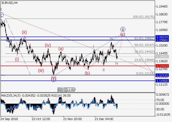 4小时图中,较高水平的上行修正发展为(2)的C的波ii。目前,ii的波(c)正在形成,其中(c)的较低水平iii的第三波已形成,修正作为(c)的波iv已收尾。如果假设正确,该货币对将会上涨至1.1586–1.1620,该情况的关键止损水平为1.1311。