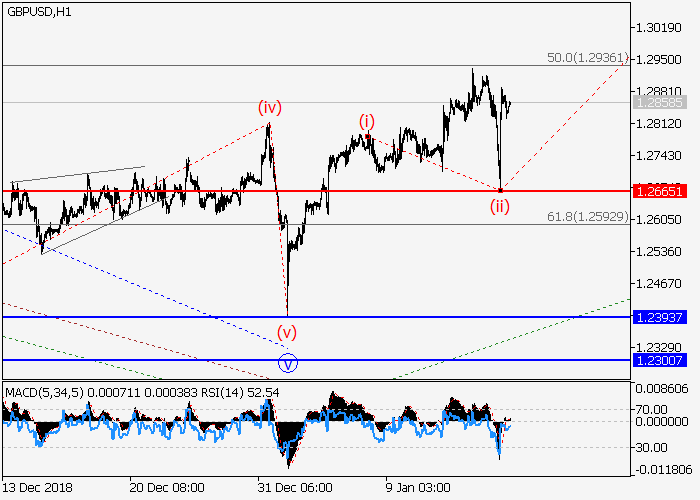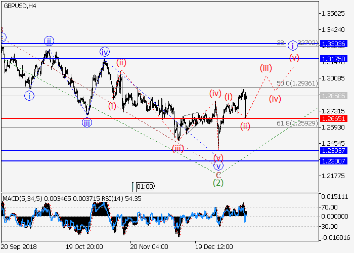 4小时图中,较高水平的下行修正发展为波(2),其中(2)的波C已形成一个楔形。目前,第三波(3)已开始发展,其中,(3)的1 的i的较低水平(i)的入市动量已形成,i的修正(ii)已结束。如果假设正确,该货币对将会升至1.3175水平。该情况的关键止损水平为1.2665。