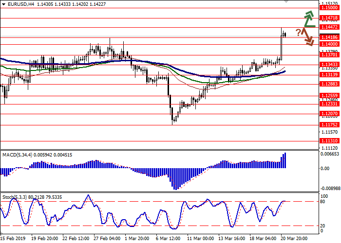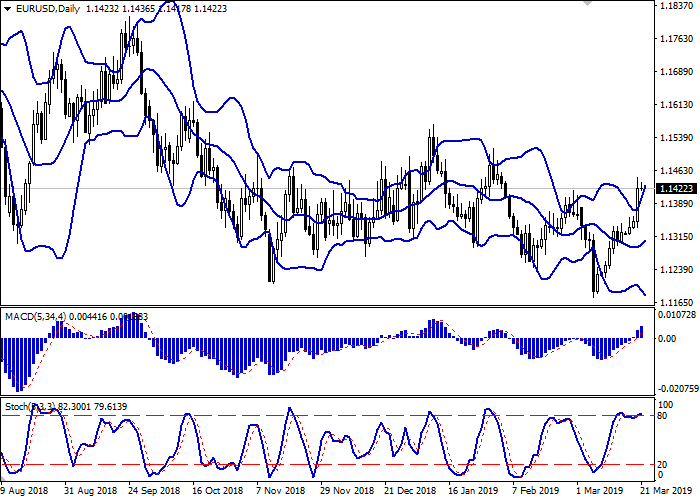周三,欧元兑美元汇率大幅上涨,刷新了2月4日创下的新高。在美联储会议记录公布之际,美元走弱是坚定“看涨”走势出现的原因。正如预期,监管机构将利率维持在2.5%不变。与此同时,最重要的是,美联储明确表示,今年不会两次按计划加息。与以往一样,监管机构计划到2020年,利率只会一次性上调。由于对英国推迟退出欧盟仍没有达成共识,英国退欧仍存在不确定性,欧元无法更坚定走强,。