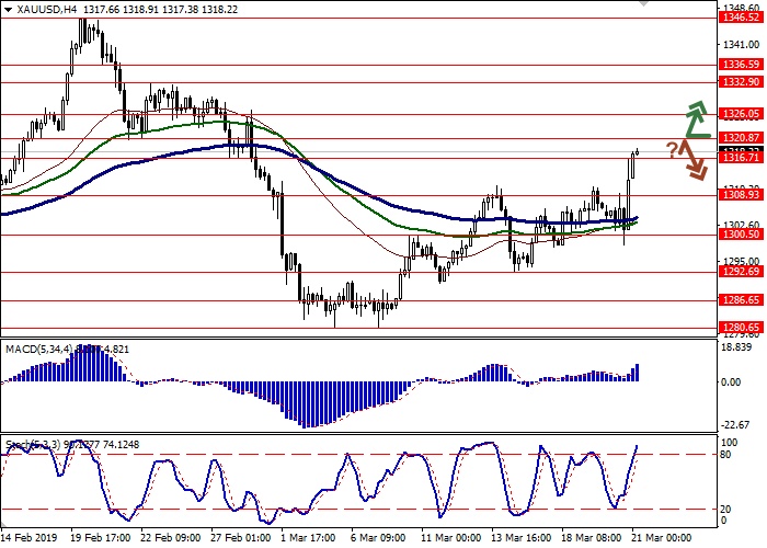 价格从抗升水平1320.87水平反转,随后跌破1316.71或1313.00,可能是修正做空的信号,目标为1300.50。止损水平为1320.87或1323.00。