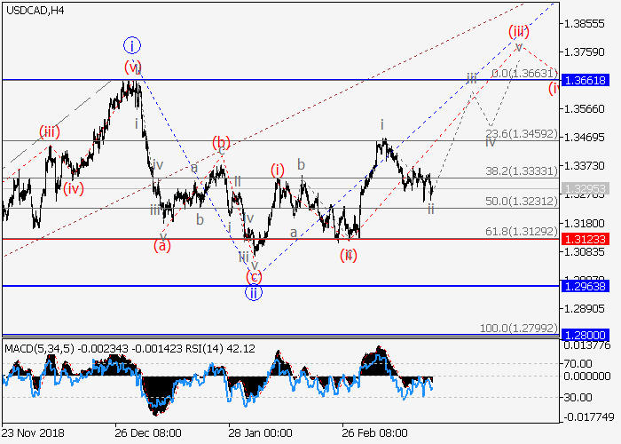 4小时图中,较高水平的修正形成为3的第二波ii,3的波iii已开始发展。目前,iii的较低水平(iii)的第三波正在形成,其中(iii)的波i已形成,(iii)的局部修正ii正在收尾。如果假设正确,价格将会升至1.3661。该情况的关键止损水平为1.3123。