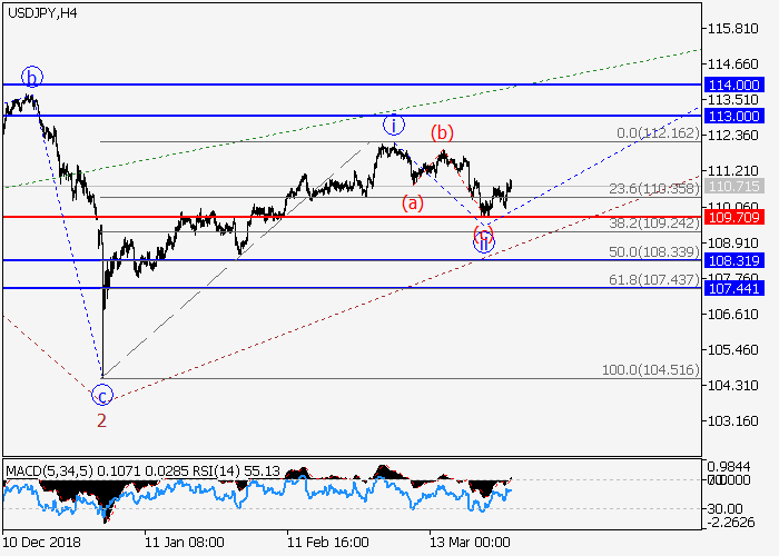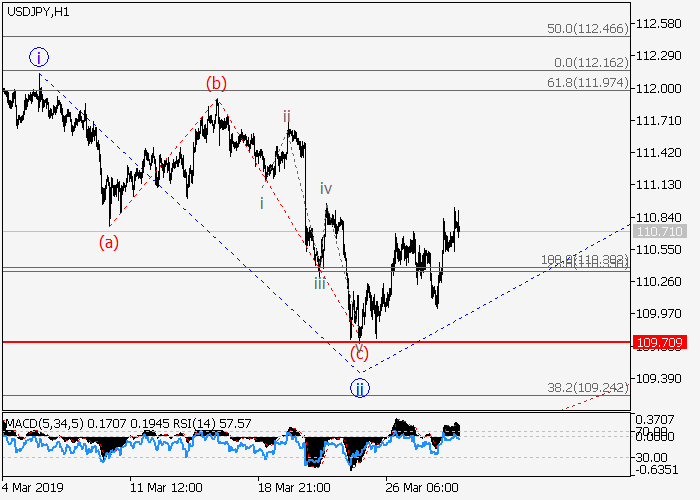 4小时图中,第一波i在(C)的较高水平3的第三波中形成。目前,下行修正已发展为3的波ii,3的波iii正开始形成。如果假设正确,价格将升至113.00–114.00水平。该情况的关键止损水平为109.70。