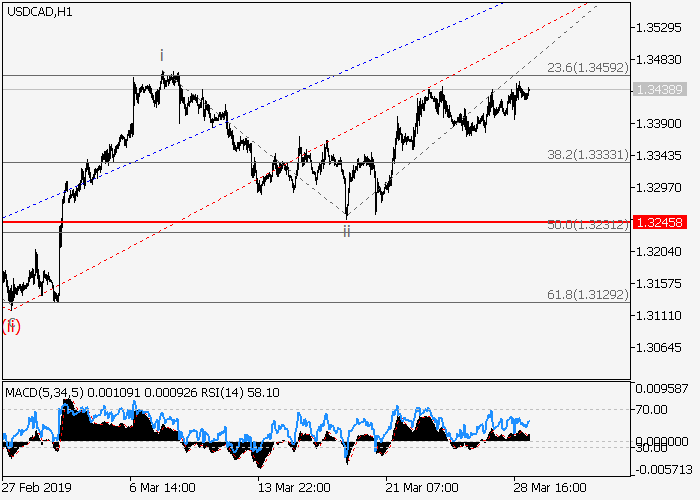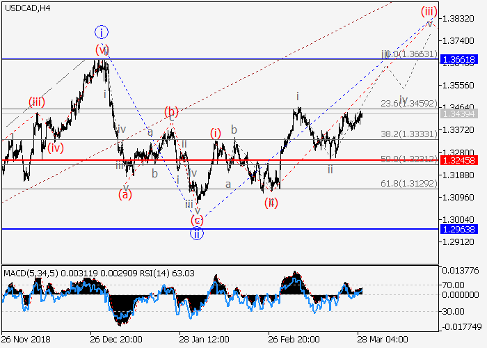 4小时图中,较高水平的修正已形成为3的第二波ii,3的波iii已开始发展。目前,iii的较低水平(iii)的第三波正在形成,其中,(iii)的波i已形成,(iii)的局部修正ii已结束。如果假设正确,价格将会在(iii)的波iii中升至1.3661。该情况的关键止损水平为1.3245。