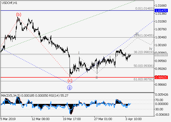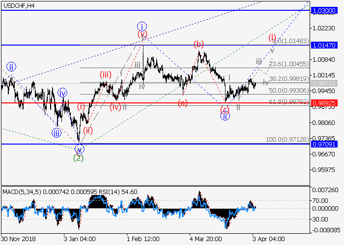 4小时图中,较高水平(3)的第三波在发展,其中(3)的1的修正波ii已结束。目前,(3)的1的较低水平iii的第三波正在开始。如果假设正确,价格将会升至1.0147–1.0300。该情况的关键止损水平为0.9892。