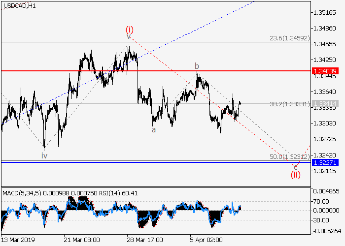 4小时图中,较高水平的修正已形成3的第二波ii,3的波iii一开始发展。目前,iii的较低水平(i)的第一波已形成,iii的局部修正(ii)正在发展,其中(ii)的波c正在形成。如果假设正确,价格将会跌至1.3227–1.3173。该情况的关键止损水平为1.3403。