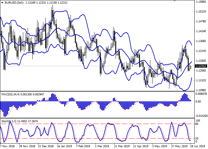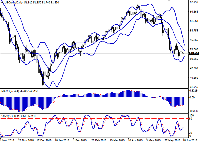 日线图中,布林带积极下降。价格区间迅速缩小,反映出短期内出现了模糊的动态。平滑异同移动平均线在增长,保持较弱的买入信号(图柱在信号线上)。随机指标上行,靠近其工作区域中心,预示着超短期修正增长的发展前景。