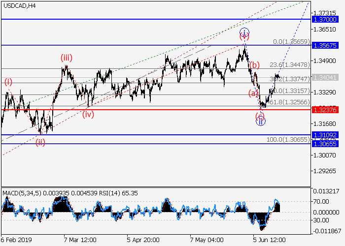 4小时图中,较高水平3的第三波在发展,其中局部修正已发展为3的波ii。目前,3的波iii正开始形成其中iii的下行修正(i)的第一波正在发展。如果假设正确,价格将会升至1.3567–1.3700。该情况的关键止损水平为1.3237。