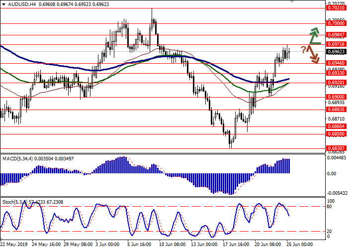 昨天,澳元兑美元汇率上涨,升至6月10日的高点。由于缺乏新的驱动因素,美元兑澳元大幅下跌,原因是紧张局势加剧,包括美伊冲突升级以及即将举行的中美元首会晤。尽管市场情绪乐观,但分析人士担心,如果特朗普和习近平6月份的谈判陷入停滞,两国贸易关系正常化近期将很难达成。周一公布的美国宏观经济数据模棱两可。5月芝加哥联邦储备银行全国经济活动指数从-0.48升至-0.05,明显好于预期(-0.37)。6月份达拉斯联邦储备银行制造业指数从-5.3点跌至-12.1点,与增长预期的4.8点相反。