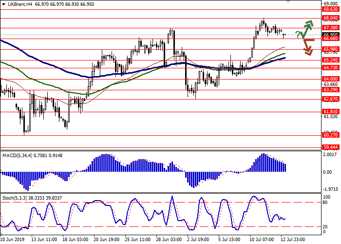 可以在价格离开66.68支持水平,并突破67.38后,开设多头头寸。止盈水平为68.63或69.00。止损水平为66.68。实施期:1-2天。