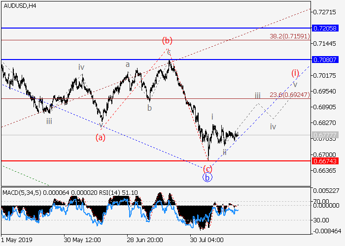 4小时图中,2的波b已形成。目前,2的波c正开始发展,其中c的(i)的较低水平i的第一个入市波和(i)的修正ii已形成。如果假设正确,价格将会升至0.7080–0.7205。该情况的关键止损水平为0.6674。