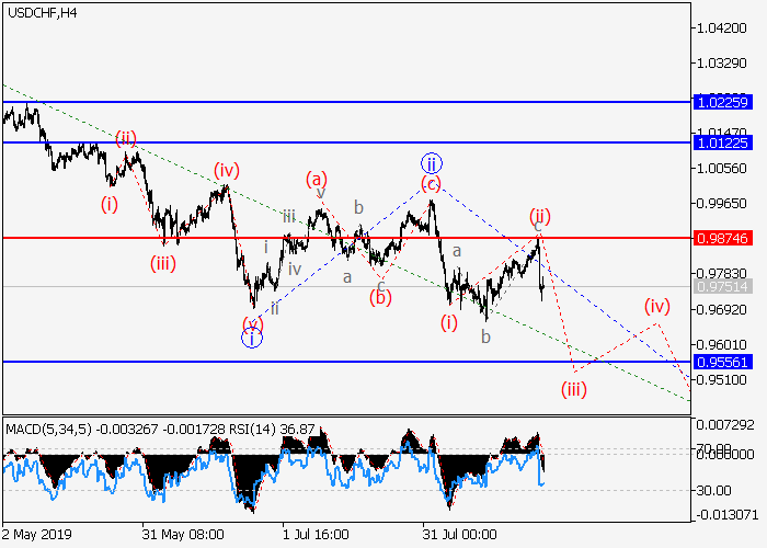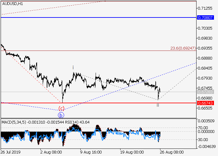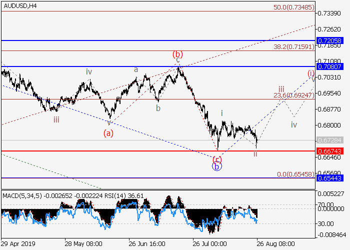 4小时图中,2的波b已形成。目前,2的波c正开始发展,其中c的(i)的较低水平i的第一个入市波以及修正已作为(i)的波ii形成。如果假设正确,该货币对将会升至0.7080–0.7205水平。该情况的关键止损水平为0.6674。
