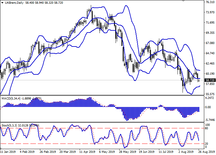 对全球经济增长进一步放缓的担忧加剧,促进了油价中消极因素的发展。上周五,中国宣布对美国商品征收750亿美元的进口关税,这可能大大推迟两国之间签署贸易协定。周五,美国贝克休斯活跃石油平台的报告给油价提供了适度支持。8月23日当周内,数量减少了16台,至754台。上期报告显示增加了4台。