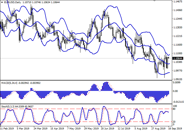 日线图中,布林带活跃生长。价格区间正在扩大,但未及该工具交易活动的急剧增加。平滑异同移动平均线指标正在增长,保持相当稳定的买入信号(位于信号线以上)。随机指标保持适度增长,并迅速接近其高点,这可能表明超短期内超买工具的风险。