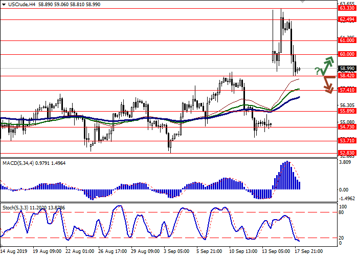 可以从58.42支持水平反转,随后突破60.00水平后,开设多头头寸,获利目标为62.49 或63.33。止损水平为58.42。