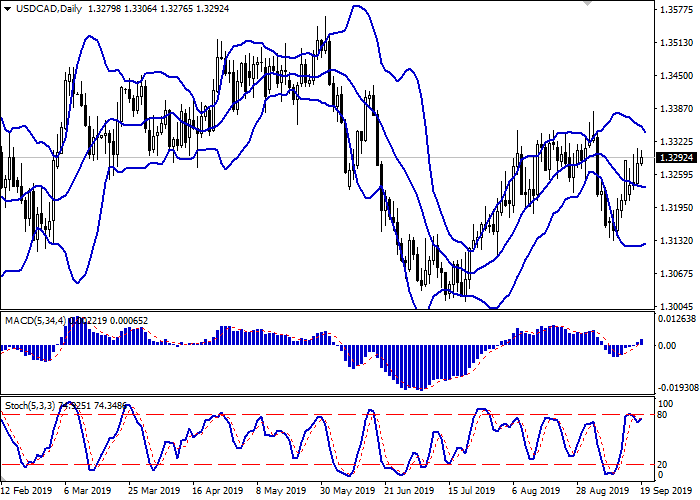 日线图上,布林带反向进入水平面。价格区间收窄,反映出中期走势趋于平稳。平滑异同移动平均线增长,保持较强买入信号(图柱在信号线上方),并试图在零线上方进行盘整。随机指数从80点回落,然后上行反转,反映出美元在超短期内超买。