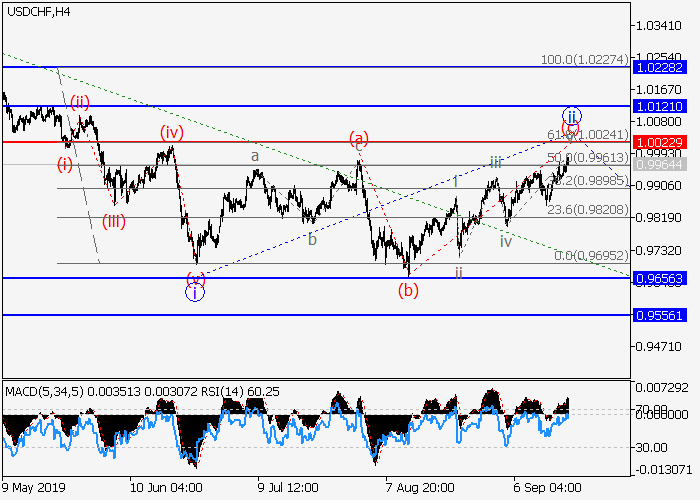 日线图中,较高水平(3)的第三波已开始发展,其中(3)的第一波1形成,局部修正已发展为1的波ii,呈不规则平面,其中,ii的波(c)已形成。如果假设正确,价格将会在1的波iii内跌至0.9656–0.9556水平。该情况的关键止损水平为1.0022。