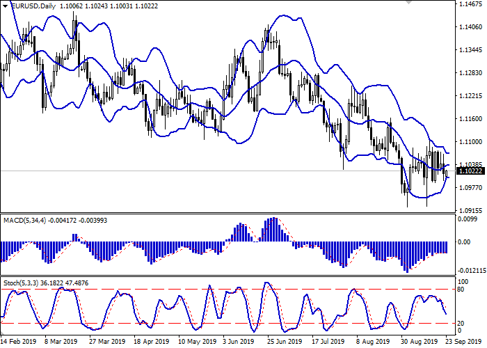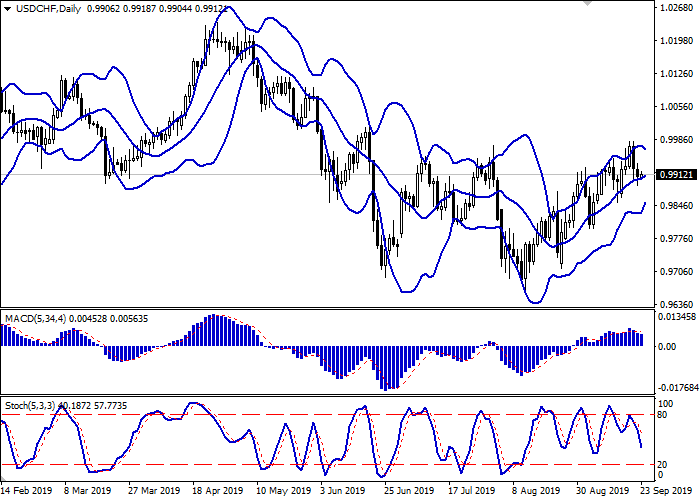 日线图中,布林带稳定上涨。价格区间正在收窄,反映出短期交易动态模糊。平滑异同移动平均线正在增长,保持弱买入信号(位于信号线上方)。随机指标正在下降,接近“20”的水平,这是超卖工具的正式边界。应等到形势明朗、技术指标更新的交易信号出现后,再开新仓。