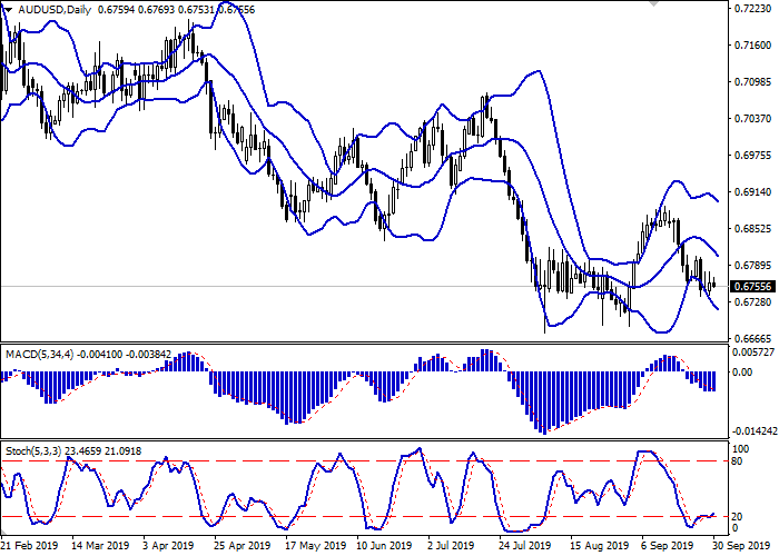 日线图上,布林带呈平面动态。价格区间从下方略微收窄,反映出交易的不确定性。平滑异同移动平均线指数下降,保持强卖出信号(图柱位于信号线下),并即将打破零线。然而,随机指数正在下降,正迅速接近其低点,这表明黄金可能在非常短的时间内出现超卖。