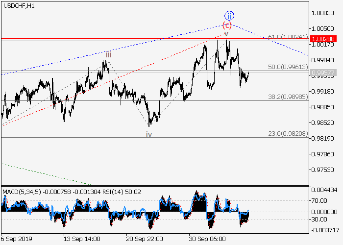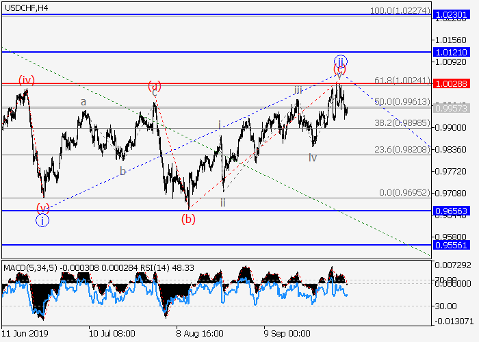 4小时图中,局部修正已发展为1的较高水平ii的第二波,呈平面。目前,ii的波(c)已形成,1的波iii正开始发展。如果假设正确,价格将会跌至0.9656–0.9556水平。该情况的关键止损水平为1.0028。