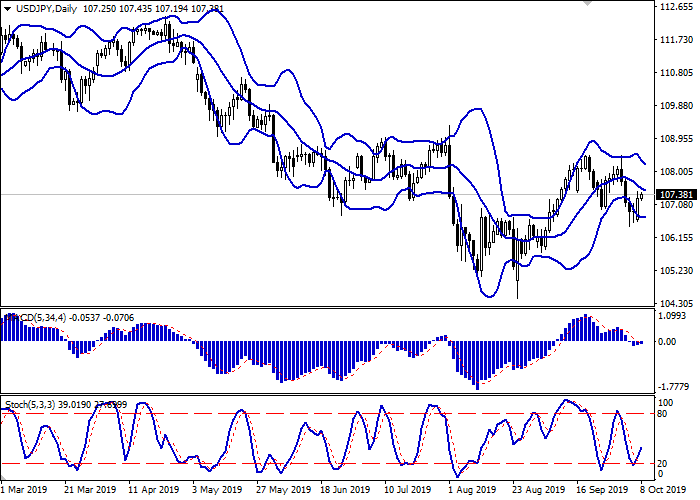 日线图中布林带逐渐减小。价格区间正在收窄,反映了短期内多向动态形成。平滑异同移动平均线正转向增长,形成弱买入信号(位于信号线上方)。该指标即将测试零水平,准备突破。随机指数从“20”水平反弹,目前预示着超短期内可能会发展上升趋势。