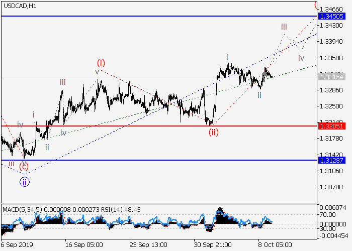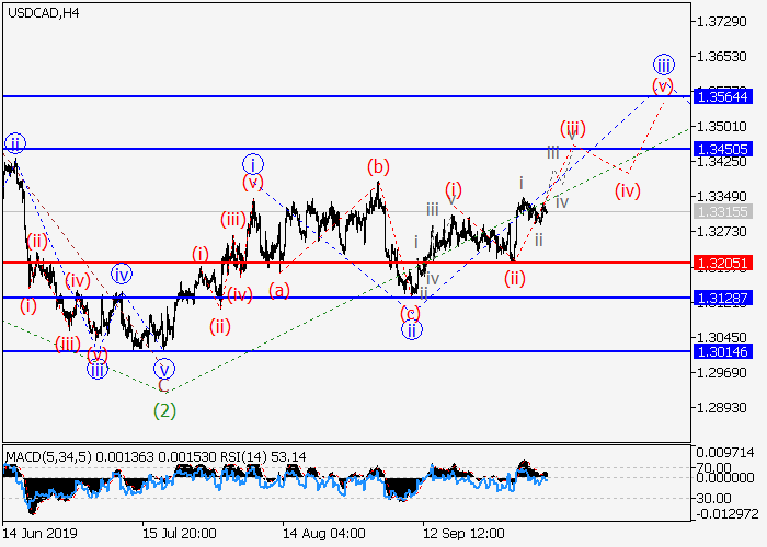4小时图中,较高水平(3)的第三波发展,其中修正已结束为(3)的1的波ii。目前,1的波iii正在发展,其中iii的局部修正(ii)已结束,iii的第三波(iii)正在形成。如果假设正确,价格将会升至1.3450–1.3564。该情况的关键止损水平为1.3205。