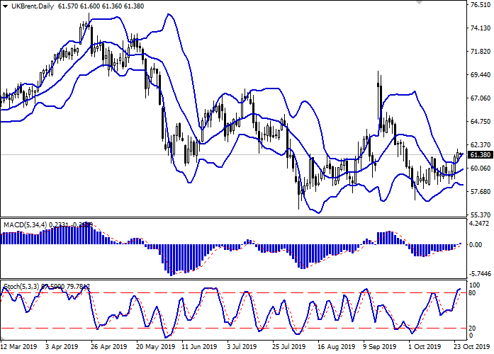 周四,油价呈温和增长,、美国能源部的报告继续给到油价支持。截至10月18日当周,石油储备减少了170万桶,分析师预计将增加223万桶,而上期石油储备稳步增加了928万桶。指标可能会维持负面动态,因为OPEC+预计将在12月初召开会议,以扩大减产计划。反过来,中美达成全面贸易协议的希望也支持了油价。到目前为止,双方仅就未来协议的部分细节达成一致,但预测非常乐观。
