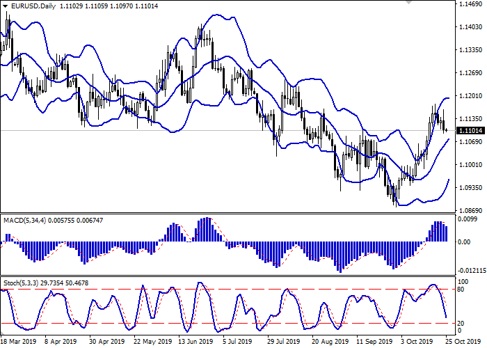 欧元兑美元汇率周四大幅下跌,刷新了10月17日的局部低点。欧洲央行会议的结果以及欧元区商业活动宏观经济统计数据,对欧元施加了压力。不出所料,欧洲监管机构将利率维持在0.00%不变。存款利率维持在-0.5%。欧洲央行指出,在通胀上升的明确信号出现之前,利率将保持在低位。此外,旨在帮助中期恢复通胀的量化宽松计划将于11月1日恢复。