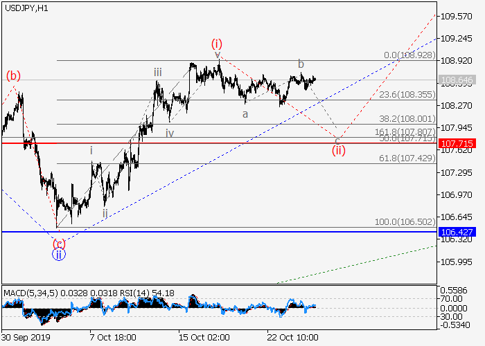 4小时图中,较高水平(3)的第三波在发展,其中下行修正已结束为(3)的1的波ii。目前,下行动量已发展为ii的波(c)。如果假设正确,价格将会开始在1的波iii中升至1.3349–1.3450水平。该情况的关键止损水平为1.3012。
