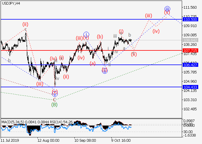 4小时图中,第三波iii在(C)的较高水平1的第一波中发展。目前,1的iii的较低水平(i)的第一波已发展,局部修正正发展为iii的波(ii)。如果假设正确,修正结束后,价格将会升至110.50。该情况的关键止损水平为107.71。