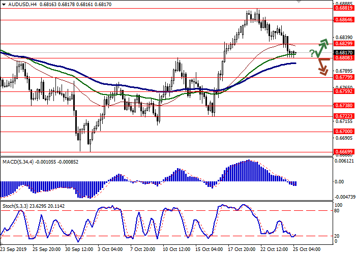 价格跌破0.6808后,可以开设空头头寸,目标为0.6759–0.6738。止损水平为0.6840。