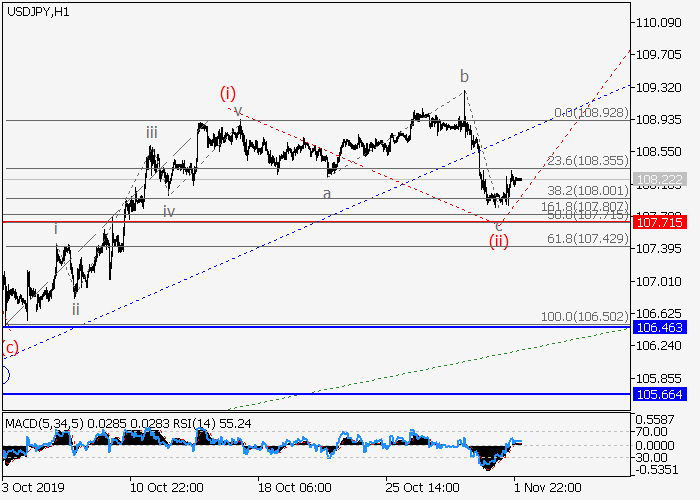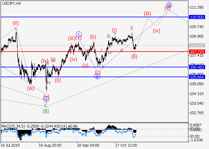 4小时图中,第三波iii在(C)的较高水平1的第一波内发展。目前,1的iii的较低水平(i)的第一波已形成,局部修正已结束为iii的波(ii),呈不规则平面。如果假设正确,该货币对可能会升至110.50。该情况的关键止损水平为107.71。